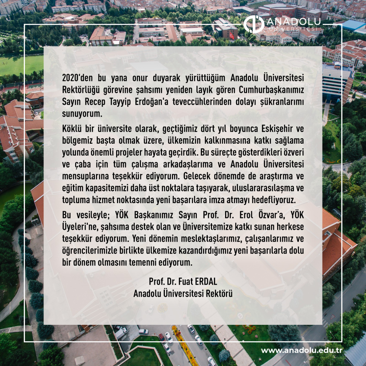 Anadolu Üniversitesinin temelini, 1958’de kurulan Eskişehir İktisadi ve Ticari İlimler Akademisi oluşturur. 1982’de Anadolu Üniversitesine dönüşen kurumumuz, kısa zamanda yalnızca ülkemizin değil dünyanın en büyük üniversiteleri arasında da çağdaş, dinamik ve yenilikçi bir üniversite olarak yerini almıştır. Bilim, kültür aynı zamanda da bir gençlik kenti olarak nitelenen Eskişehir’in merkezinde yer alan kampüs 3'ü açık ve uzaktan öğretim veren 12 Fakülte 1’i Devlet Konservatuvarı olmak üzere 3 Yüksekokul, 3 Meslek Yüksekokulu, 2 Enstitü (Lisanüstü Eğitim ve Engelliler Araştırma Enstitüsü) ve 25 Araştırma Merkezine ev sahipliği yapmaktadır.